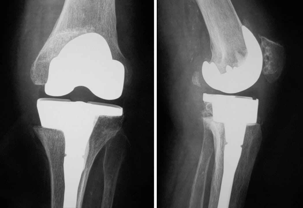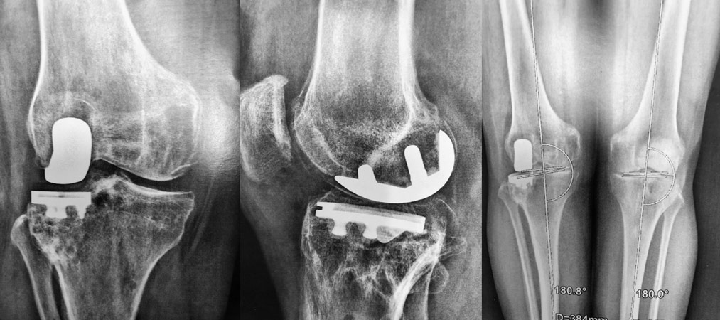 Changement pour mettre en place une prothèse totale du genou. Aucune douleur résiduelle.