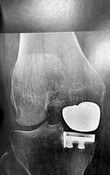 Homme 60 ans, opéré par prothèse rotulienne et prothèse uni-compartimentale interne. Toujours douloureux.