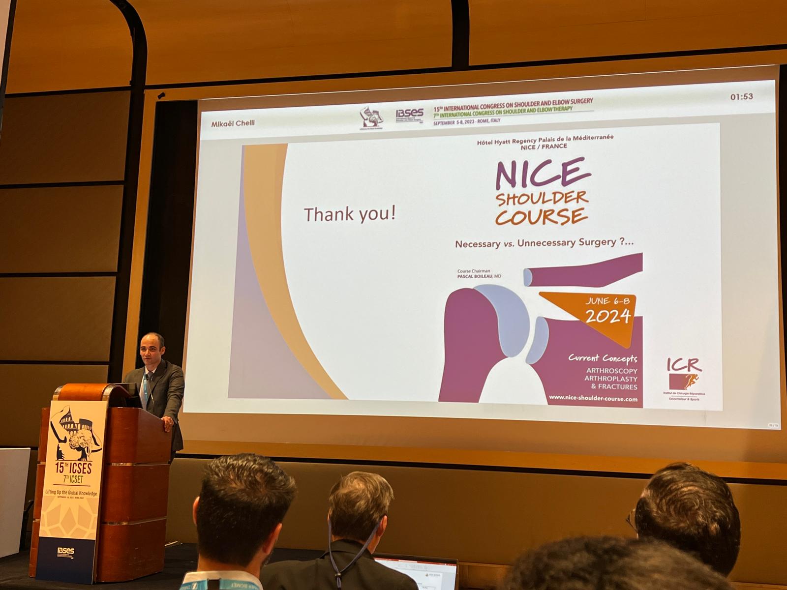 À cette occasion, il a également pu faire la promotion du prochain Nice Shoulder Course qui aura lieu au mois de juin 2024 sous la direction du Pr Pascal Boileau et de l’ensemble de l’équipe de l’ICR.